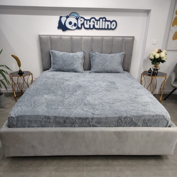 Set Husa Cocolino cu Elastic Model Tricot cu Fluturi + 2 Fete de Perna, Pat 2 Persoane, East Comfort – Gri Petrol – PUF210108