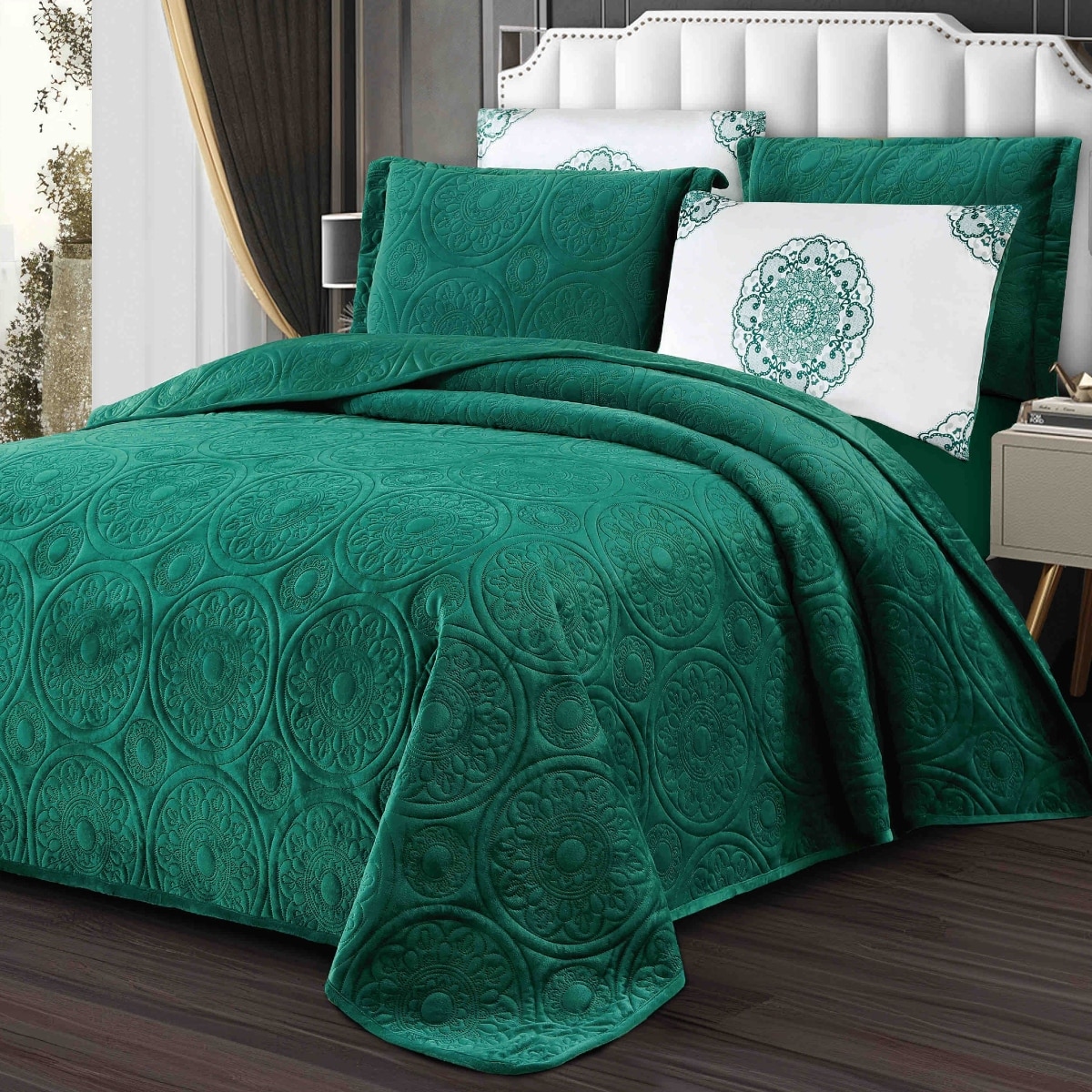 Cuvertura Premium din Catifea, 5 Piese, Pat 2 Persoane, 220 x 240cm – Verde Smarald – JoJo Home – PUF227402