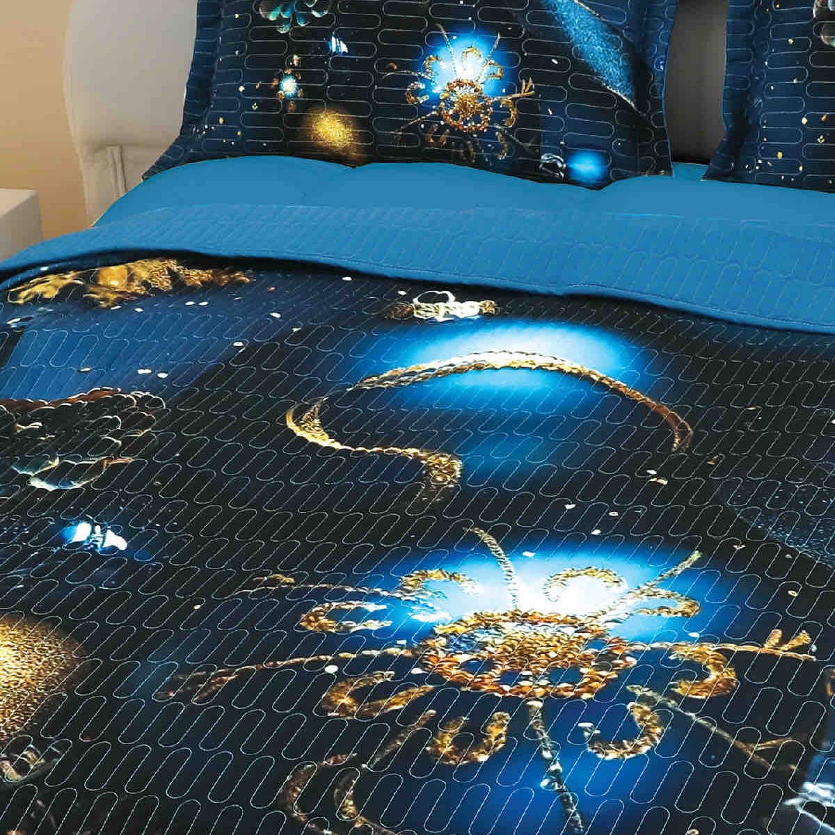 Cuvertura de pat print digital 5D + 2 fete de perne confectionate din finet gros. Cuverturile de pat confectionate din bumbac finet vor da cu siguranta o nota eleganta dormitorului tau si se potrivesc indeosebi de Craciun. Totodata, ele adauga un plus de unicitate dormitorului tau datorita imprimeurilor digitale deosebite si rezistente. Aceste imprimeuri de Craciun ale acestui set (cuvertura de pat plus fete de perna) sunt realizate cu ajutorul celor mai noi tehnologii – garantat nu se decoloreaza daca se respecta instructiunile de intretinere. Setul vine ambalat in husa de plastic – poate fi folosita ca husa pentru depozitare.