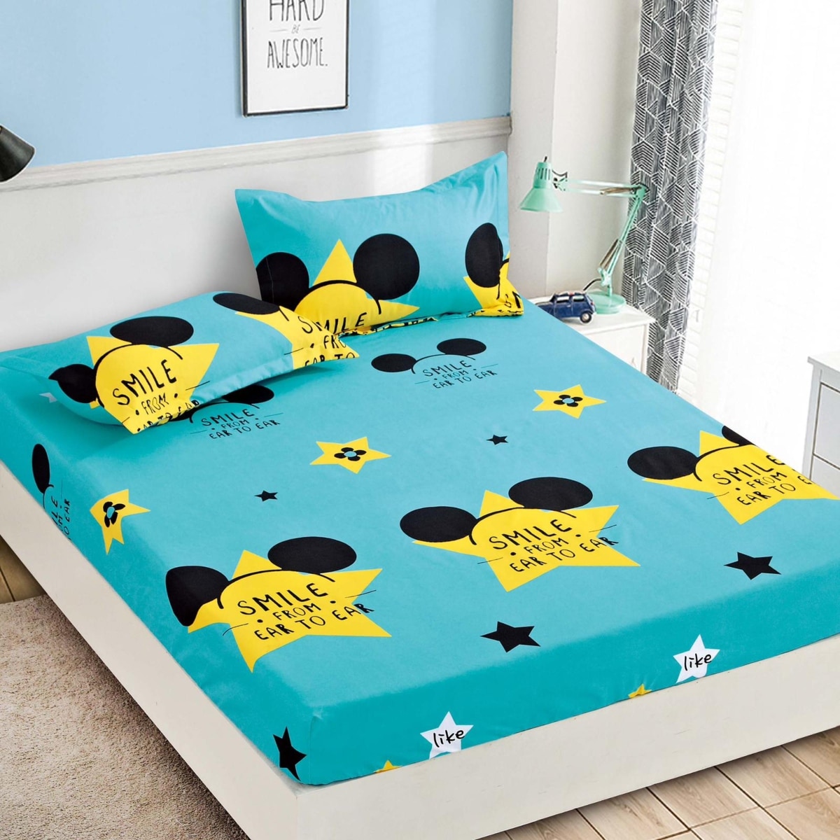 Husa de pat cu elastic + 2 Fete de Perna, Pat 2 Persoane – JoJo Home – PUF33553