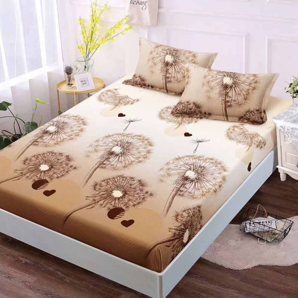 Husa de Pat cu Elastic din Finet + 2 Fete de Perna, 160x200cm, Bej cu Papadie – Sky Home – PUF236530