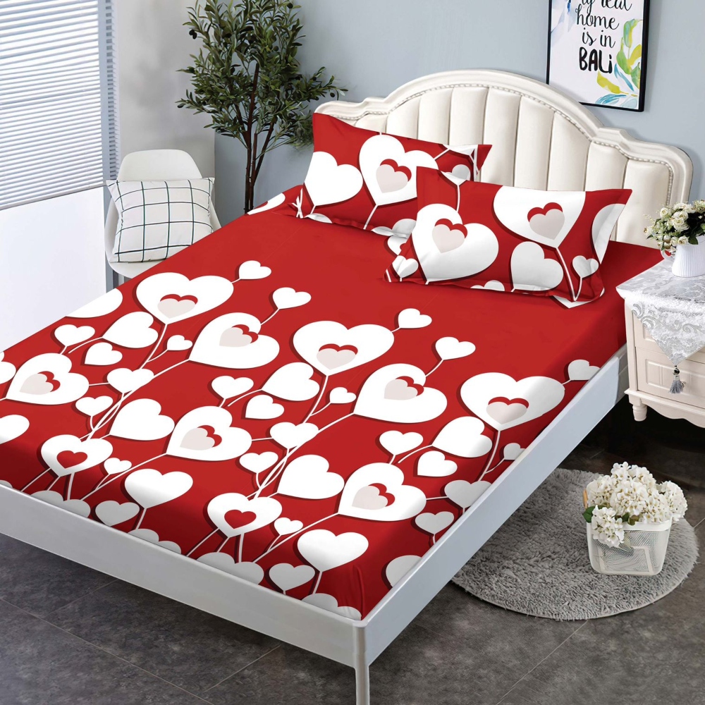Husa de Pat cu Elastic din Finet + 2 Fete de Perna, 160x200cm, Inimioare Albe – Sky Home – PUF175390
