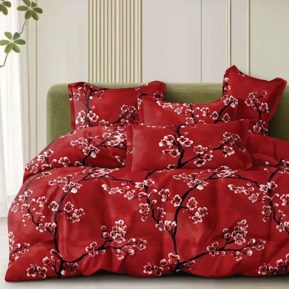 Lenjerie de pat din material textil satinat pentru pat de doua persoane. Lenjeriile noastre au o tesatura extrem de fina, placuta la atingere si iti ofera tot confortul de care ai nevoie indiferent de sezon. Datorita calitatii superioare a tesaturii, culorile si imprimeurile vor ramane intacte chiar si dupa multiple spalari sau calcari.
