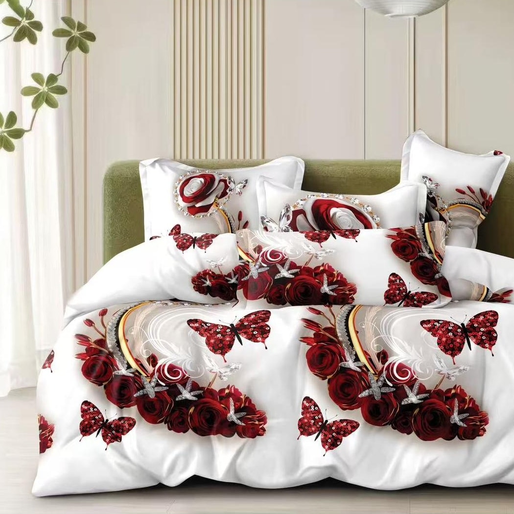 Lenjerie de Pat din Bumbac Satinat, 4 Piese, Pat 2 Persoane, Fluturi Grena – Sky Home – PUF21845
