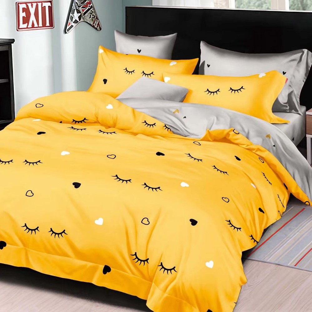 Lenjerie de Pat din Bumbac Satinat, 4 Piese, Pat 2 Persoane, Lashes – Sky Home – PUF50052