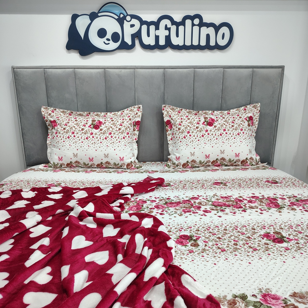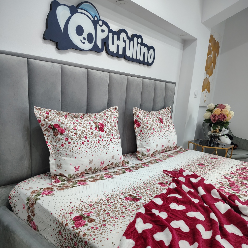 Husa de pat cu elastic si 2 fete de perna confectionata din bumbac finet. Husa beneficiaza de sistem de prindere inteligent, cu elastic, ce ii permite sa aiba o pozitie fixa pe saltea indiferent de moment.