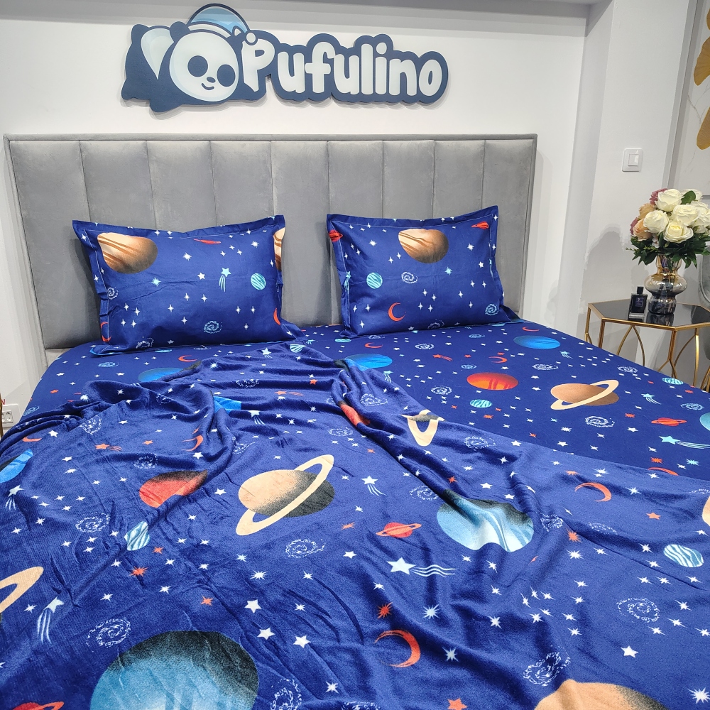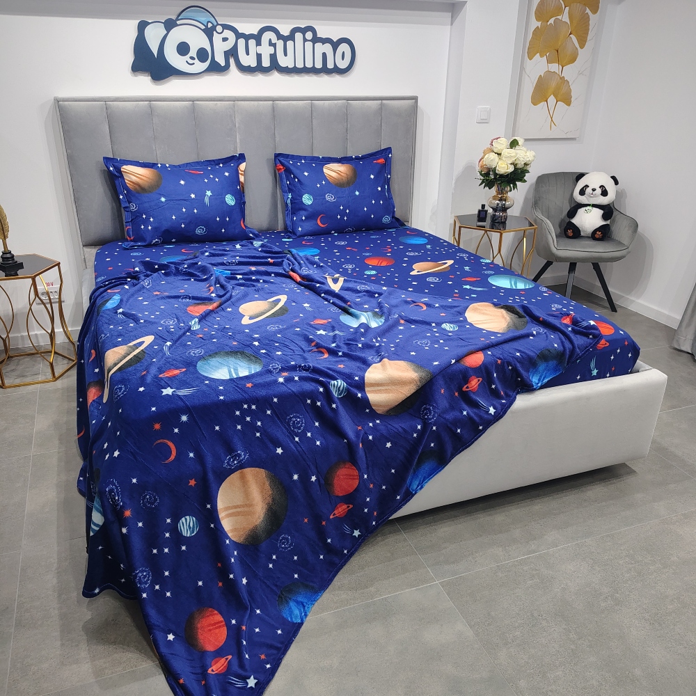 Husa de pat cu elastic si 2 fete de perna confectionata din bumbac finet. Husa beneficiaza de sistem de prindere inteligent, cu elastic, ce ii permite sa aiba o pozitie fixa pe saltea indiferent de moment.