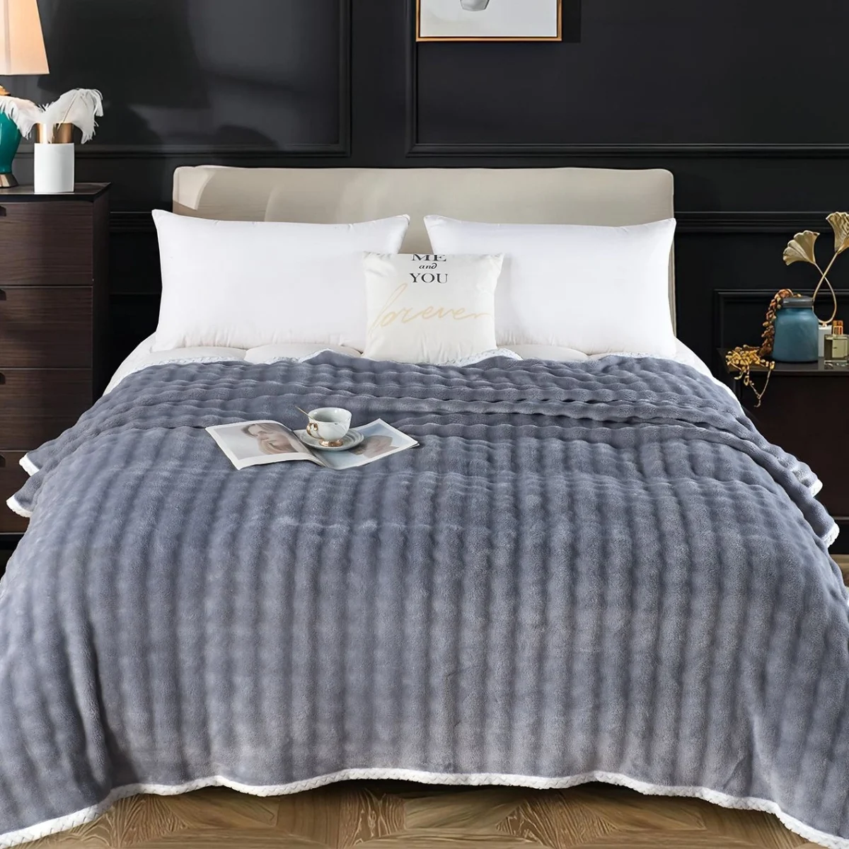 Patura Cocolino cu bordura impletita, cu o textura foarte fina si catifelata. Patura este foarte practica, poate fi folosita atat pentru a amenaja patul, in dormitor, cat si pentru a acoperi canapeaua sau pentru a va incalzi in perioadele friguroase ale anului. Designul unic, cu bordura alba impletita si materialul foarte pufos ii confera un aspect deosebit care cu siguranta va fi remarcat de oaspetii casei voastre.