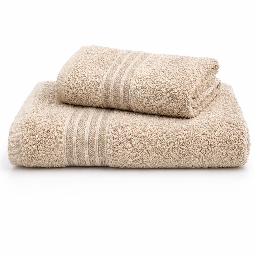 Set 2 Prosoape de Baie(Fata + Corp), Model Uni, Bumbac 100%, Bej – Karmen Home – PUF237258