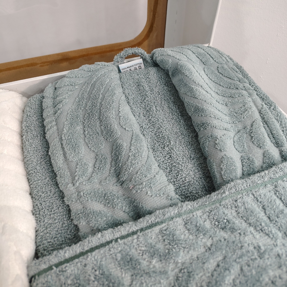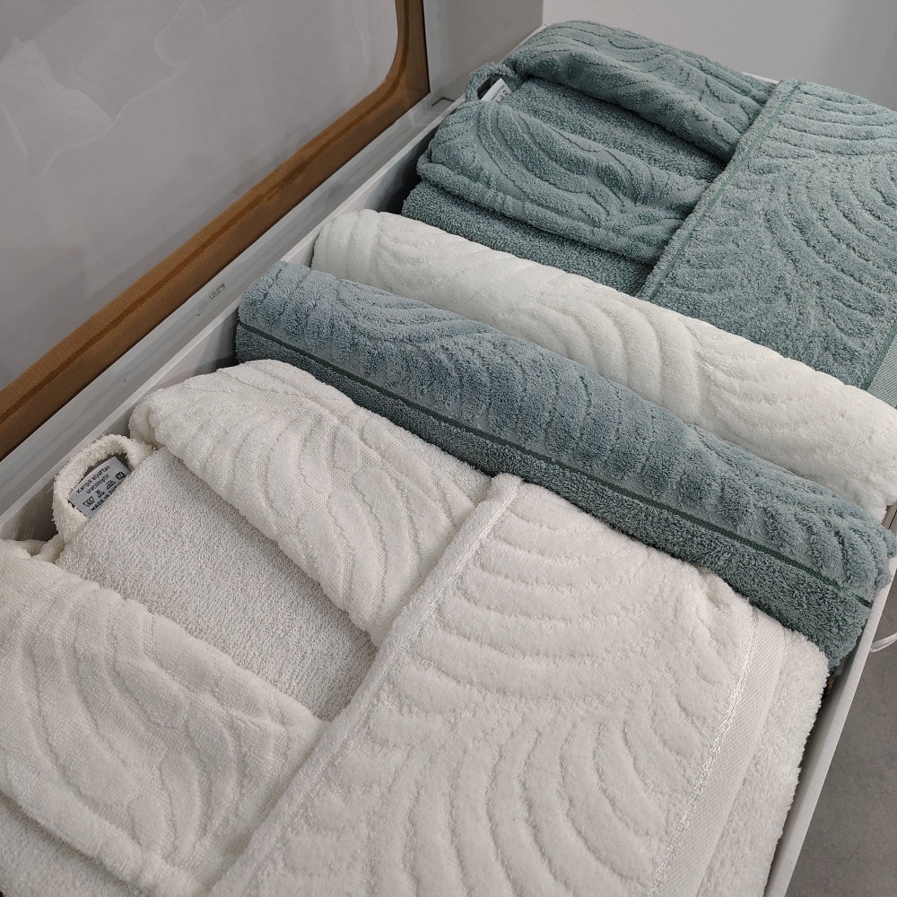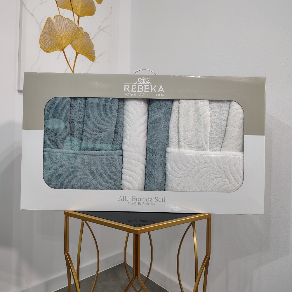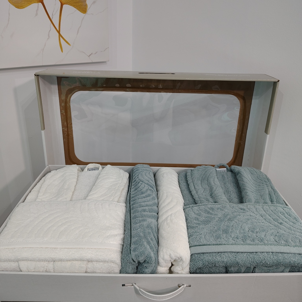 Set Cadou 6 Piese: Halate de Baie + Prosoape din Bumbac 100%, Alb & Vernil – Rebeka – PUF237123