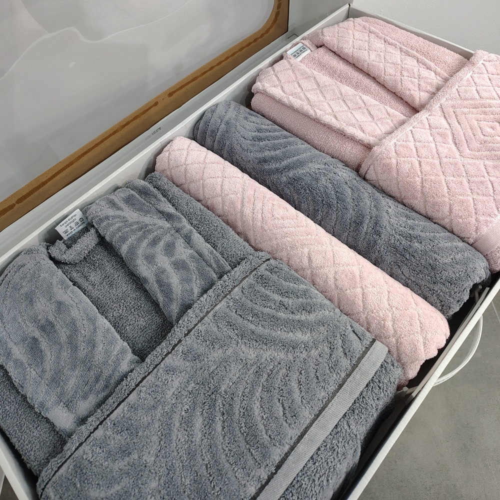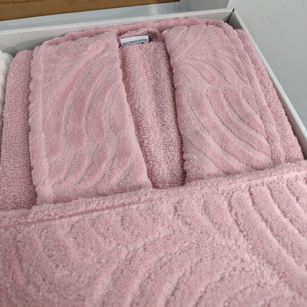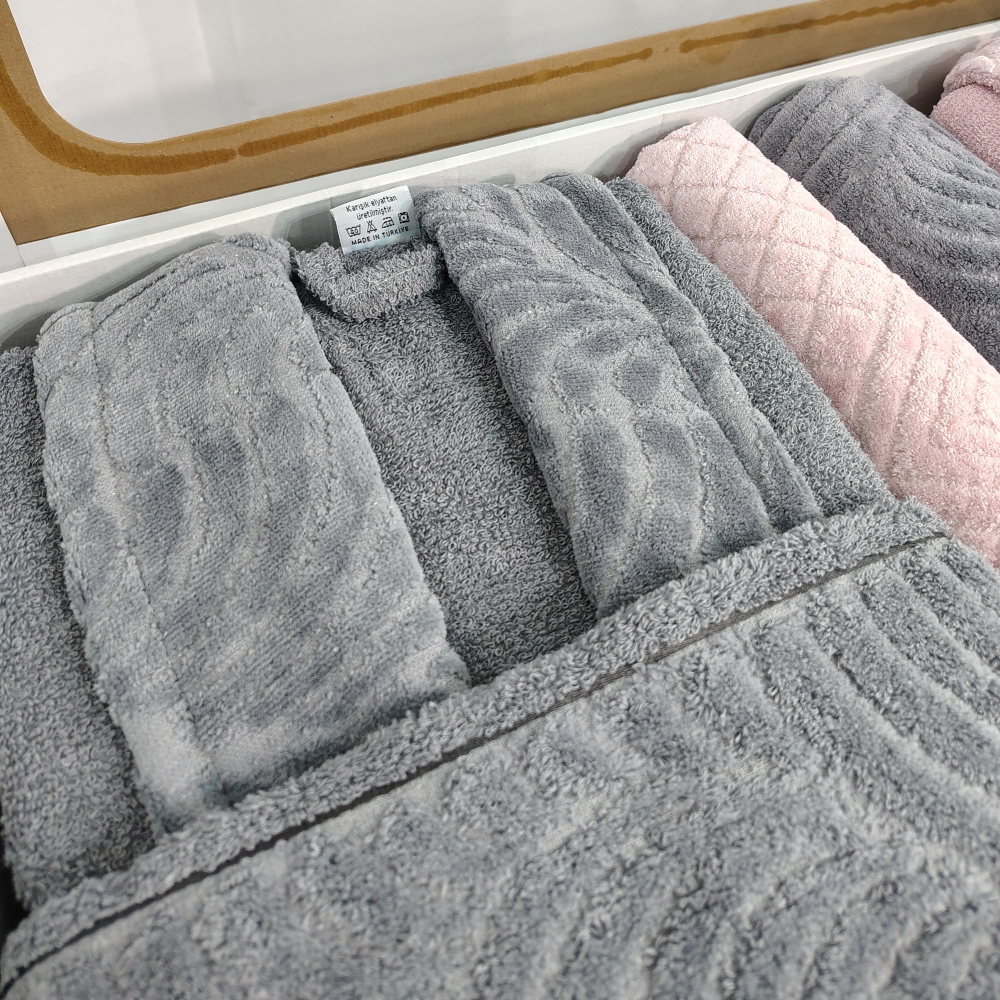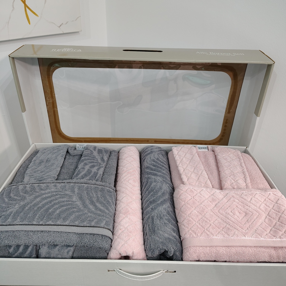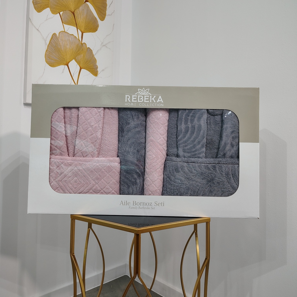 Set Cadou 6 Piese: Halate de Baie + Prosoape din Bumbac 100%, Roz Pudra & Gri Inchis – Rebeka – PUF237135