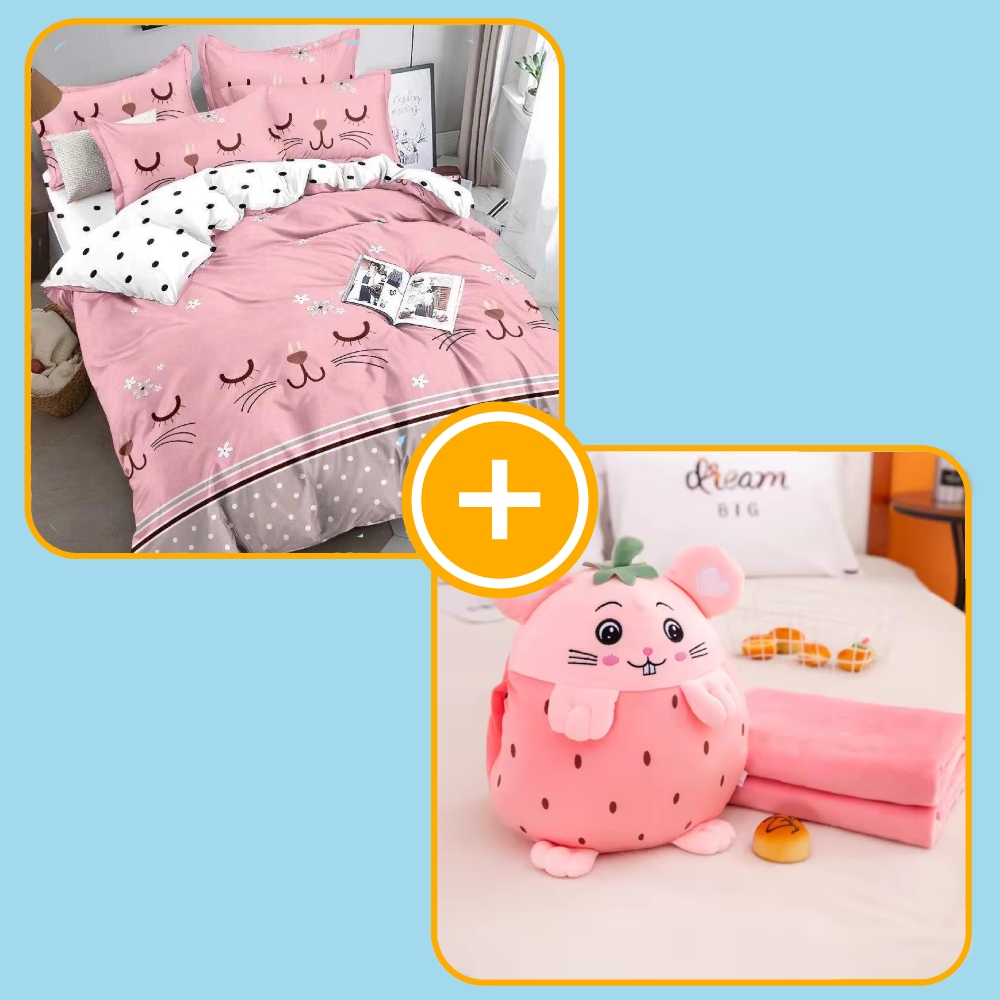 Set Cadou Pink Family: Lenjerie Pat 1 Persoana + Perna Decorativa + Patura Cocolino – PUF155719