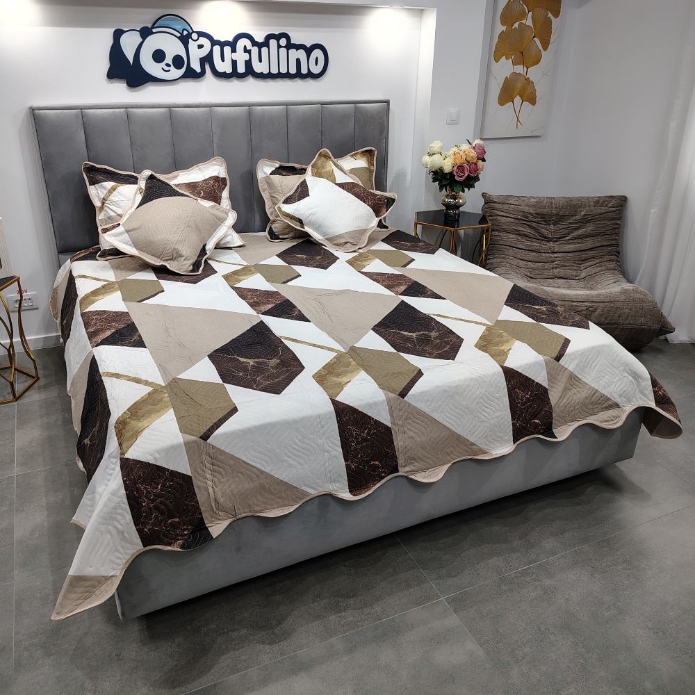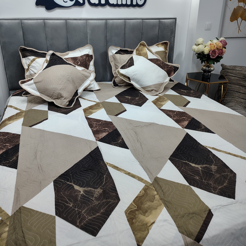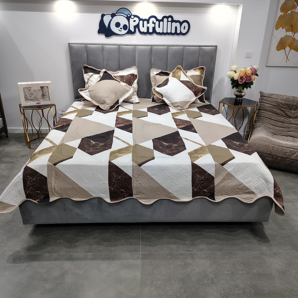 Cuvertura de pat + 4 fete de perne confectionate din policoton (bumbac + poliester). Cuverturile de pat sunt potrivite pentru orice anotimp. Totodata, ele adauga un plus de unicitate dormitorului tau prin imprimeul deosebit. Imprimeul acestui set (cuvertura pat plus fete de perna) este realizat cu cele mai noi tehnologii – garantat nu se decoloreaza daca se respecta instructiunile de intretinere. Setul vine ambalat in husa de plastic – poate fi folosita ca husa pentru depozitare.