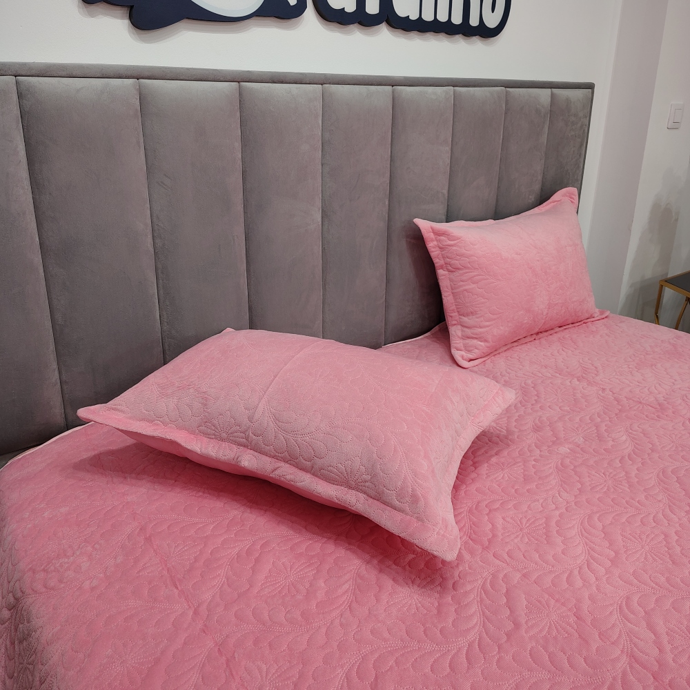Cuvertura de pat + 2 fete de perne confectionate din material catifelat. Cuverturile de pat sunt potrivite indiferent de anotimp. Totodata, ele adauga mai multa caldura dar si bun gust dormitorului tau. Imprimeul acestui set (cuvertura pat plus fete de perna) este realizat cu cele mai noi tehnologii – garantat nu se decoloreaza daca se respecta instructiunile de intretinere. Setul vine ambalat in husa de plastic – poate fi folosita ca husa pentru depozitare.