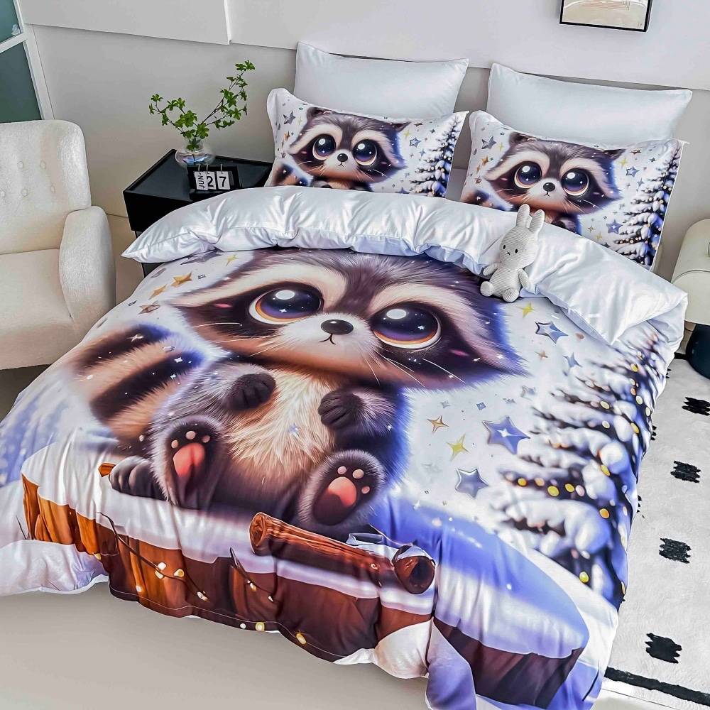 Lenjeria de pat cu imprimeu 3D identic cu poza este unul dintre cele mai cautate produse ale momentului. Colectia pentru pat de o persoana, dedicata mai ales copiilor, este special gandita pentru saltelele de 90×100, 100×200 sau 120x200cm, materialul din bumbac finet tratat special pentru un plus de rezistenta fiind ideal indiferent de sezon.