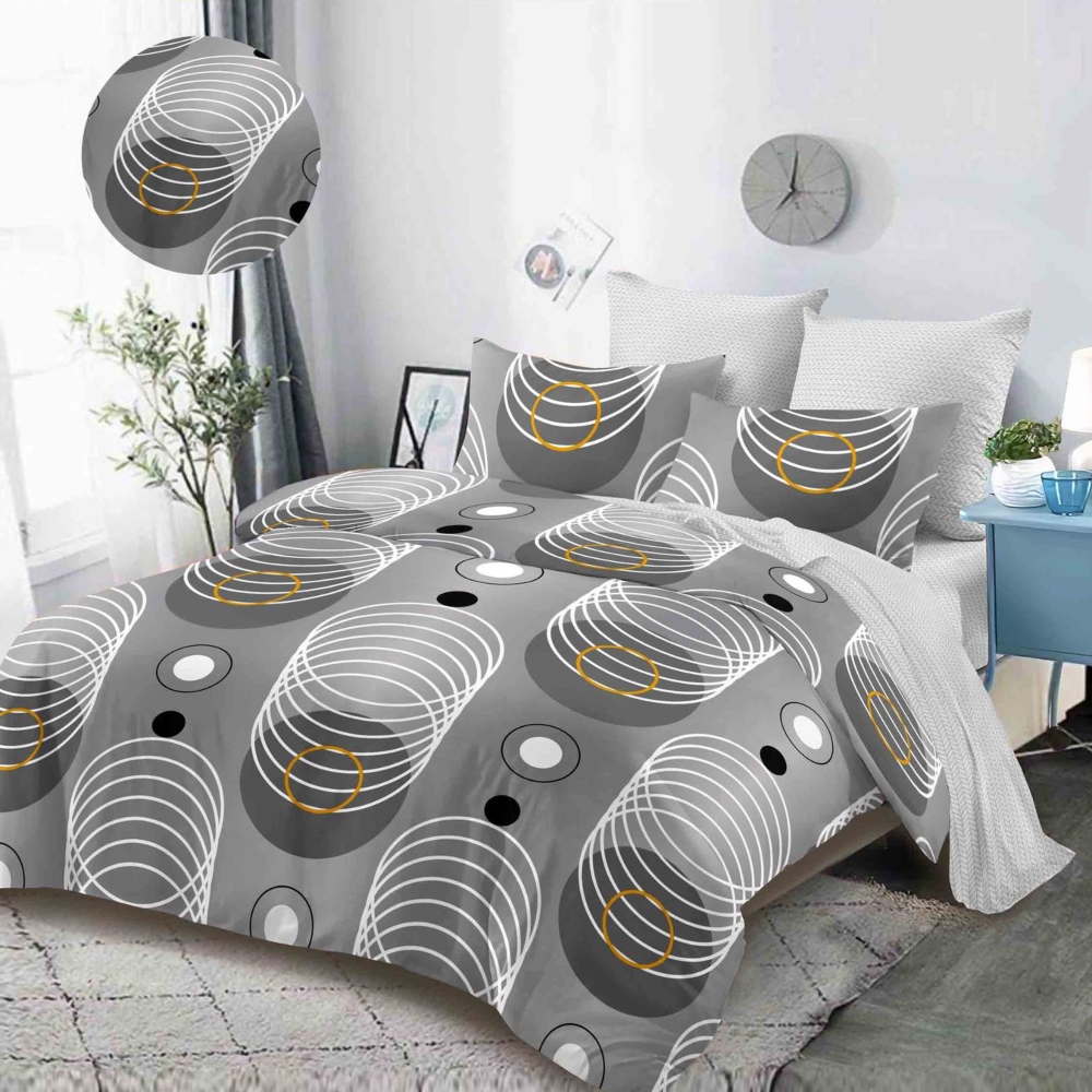 Lenjerii de pat din Finet Gros pentru pat dublu. Lenjeriile au o țesătură fină și plăcută la atingere și vă pot oferi confortul de care aveți nevoie în fiecare clipă. Datorită rezistenței și calității ridicate a țesăturii și imprimării pot fi folosite o perioadă lungă de timp, fără a-și modifica culorile sau caracteristicile. Materialul din care este confectionata lenjeria este de calitate superioara cu o textura fina, moale, foarte placuta la atingere si tratat antisifonare.