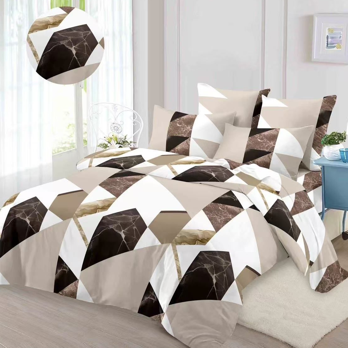 Set Lenjerie de Pat din Finet, Cearceaf cu Elastic, 6 Piese, Pat 2 Persoane Beige Marble – Sky Home – PUF204028