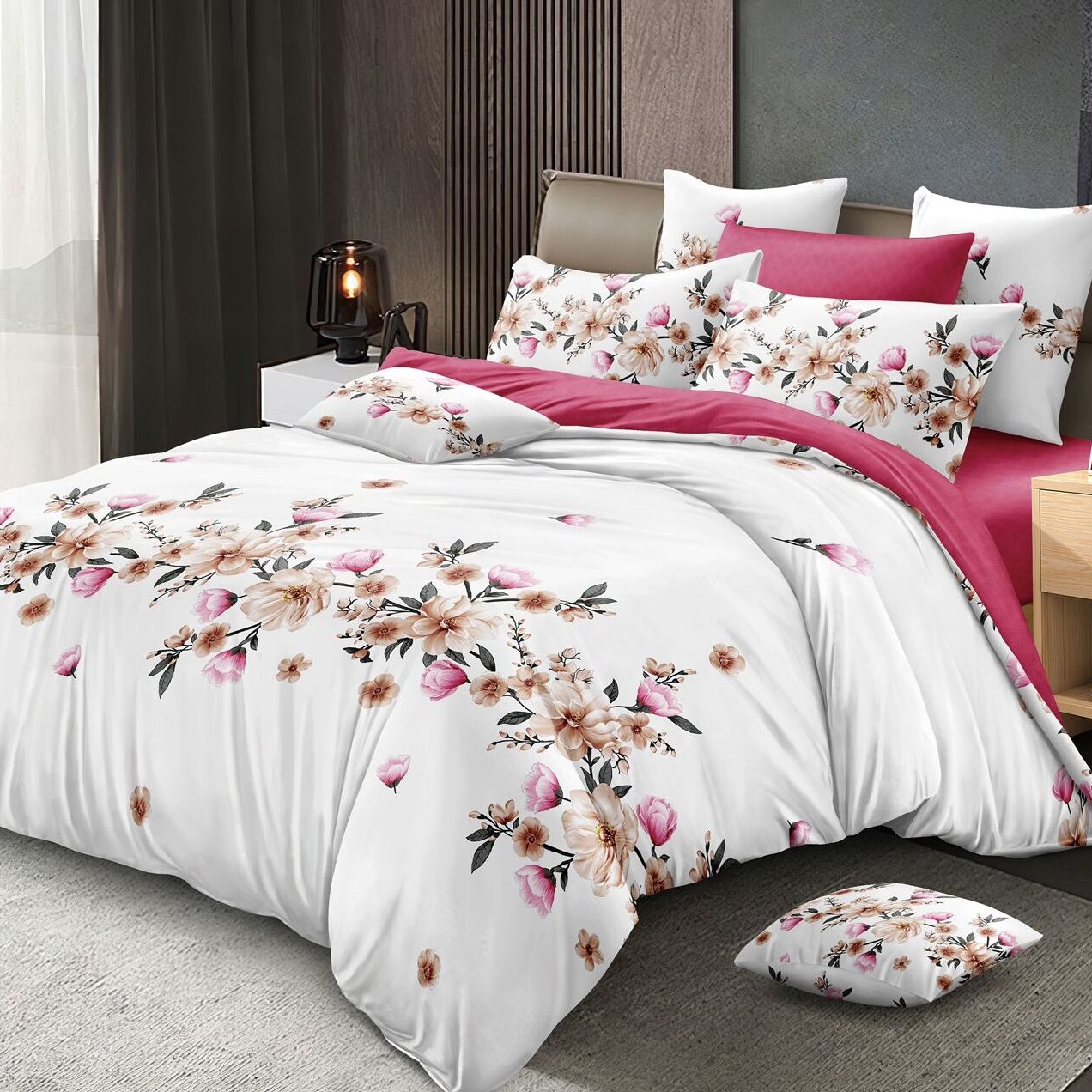 Set Lenjerie de Pat din Finet Gros, 6 Piese, Pat 2 Persoane, Flori de Cires – Super Elegant Pucioasa – PUF75667