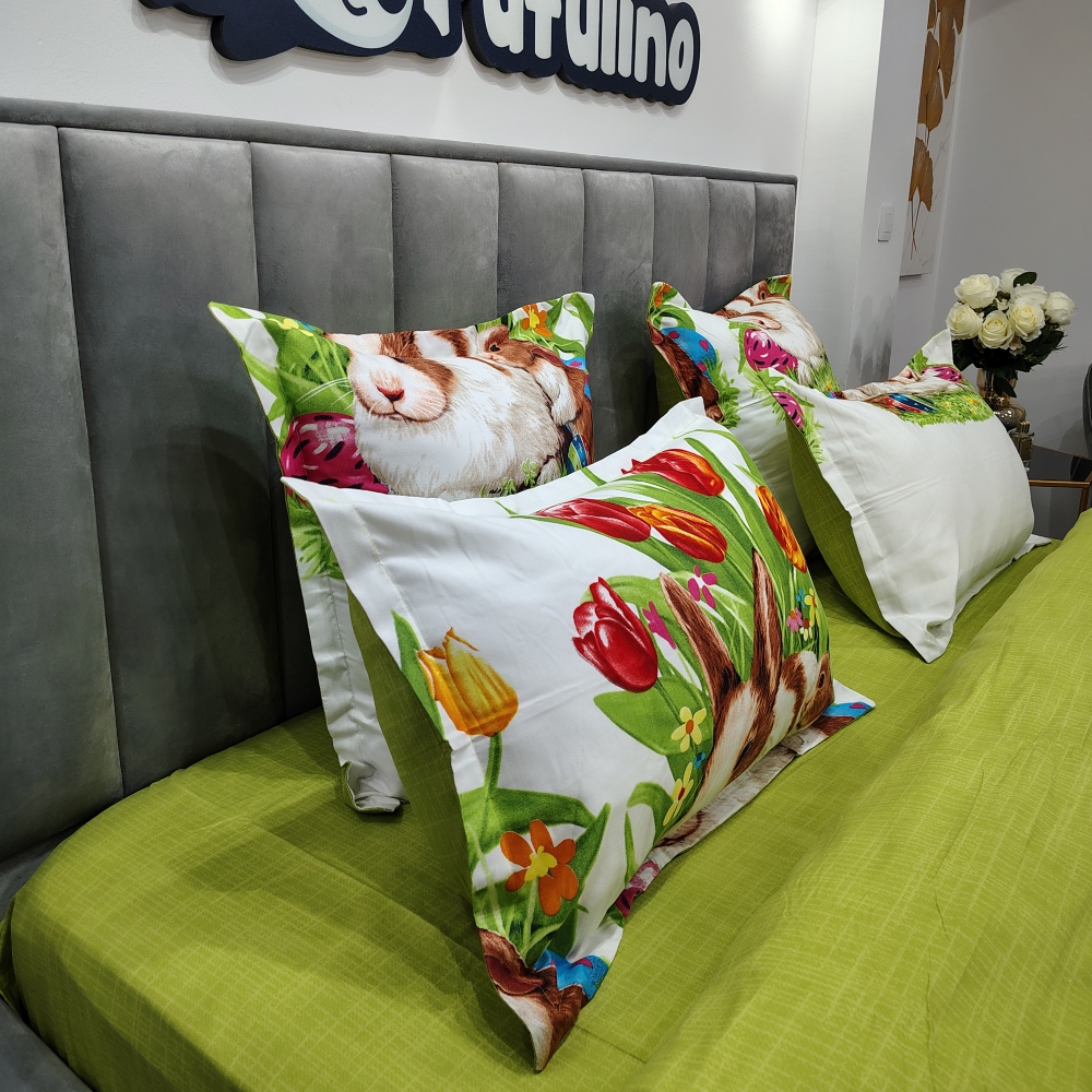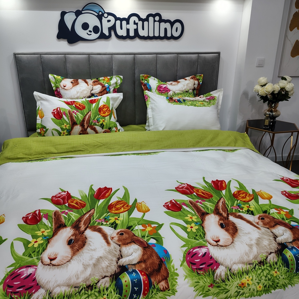 Lenjerii de pat din bumbac finet gros pentru pat dublu. Lenjeriile au o țesătură fină și plăcută la atingere și vă pot oferi confortul de care aveți nevoie în fiecare clipă. Datorită rezistenței și calității ridicate a țesăturii și imprimării pot fi folosite o perioadă lungă de timp, fără a-și modifica culorile sau caracteristicile. Materialul din care este confectionata lenjeria este de calitate superioara cu o textura fina, moale, foarte placuta la atingere si tratat antisifonare.