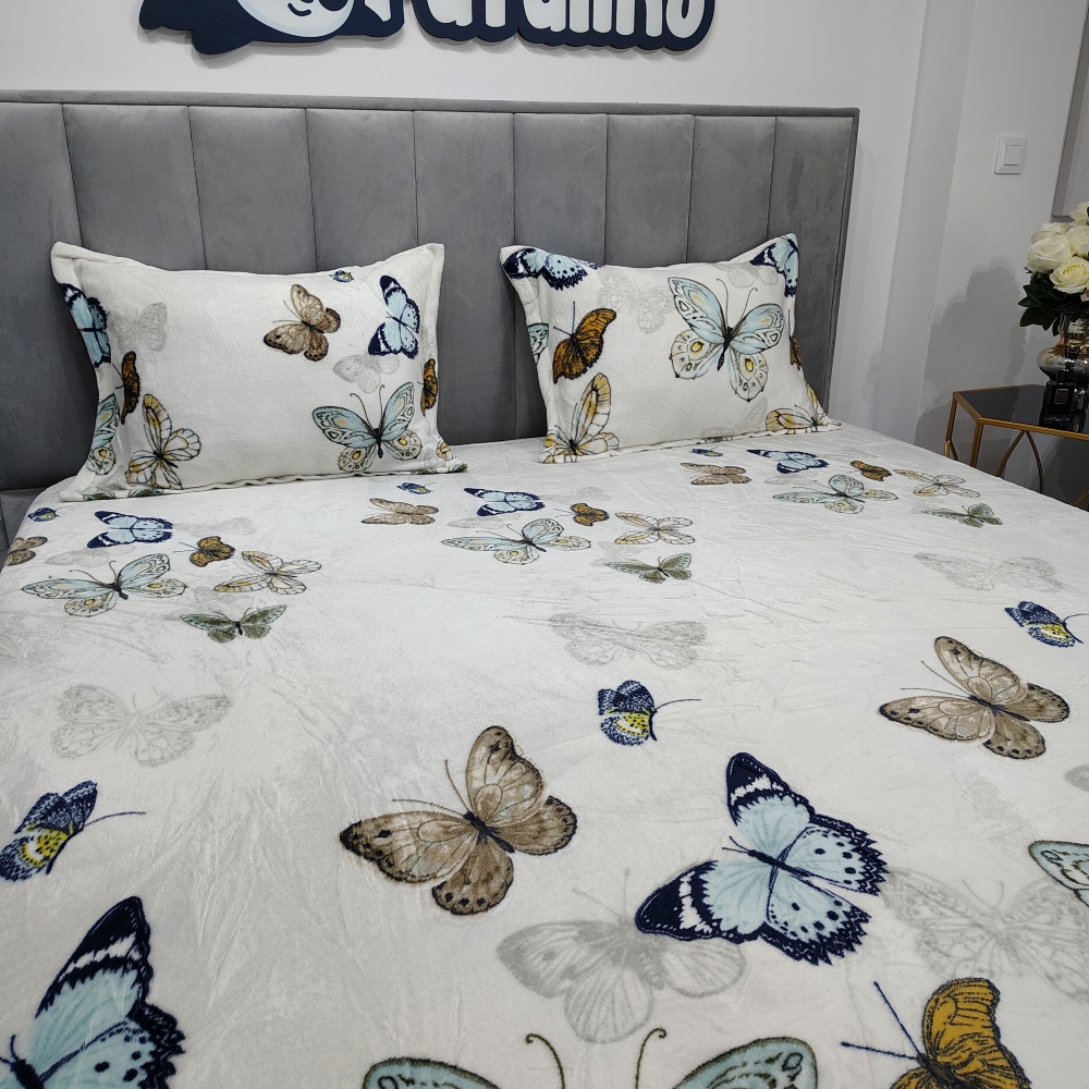 Set Lenjerie Pufoasa Cocolino cu Elastic, Pat 2 Persoane, 4 Piese – Colored Butterflies – East Comfort – PUF210612