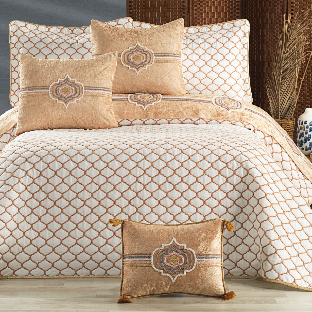 Set Luxury Oskar Crem/Altin: Cuvertura, 4 Fete Perna + Fata Perna Decorativa, 6 Piese – Brillant – PUF237293