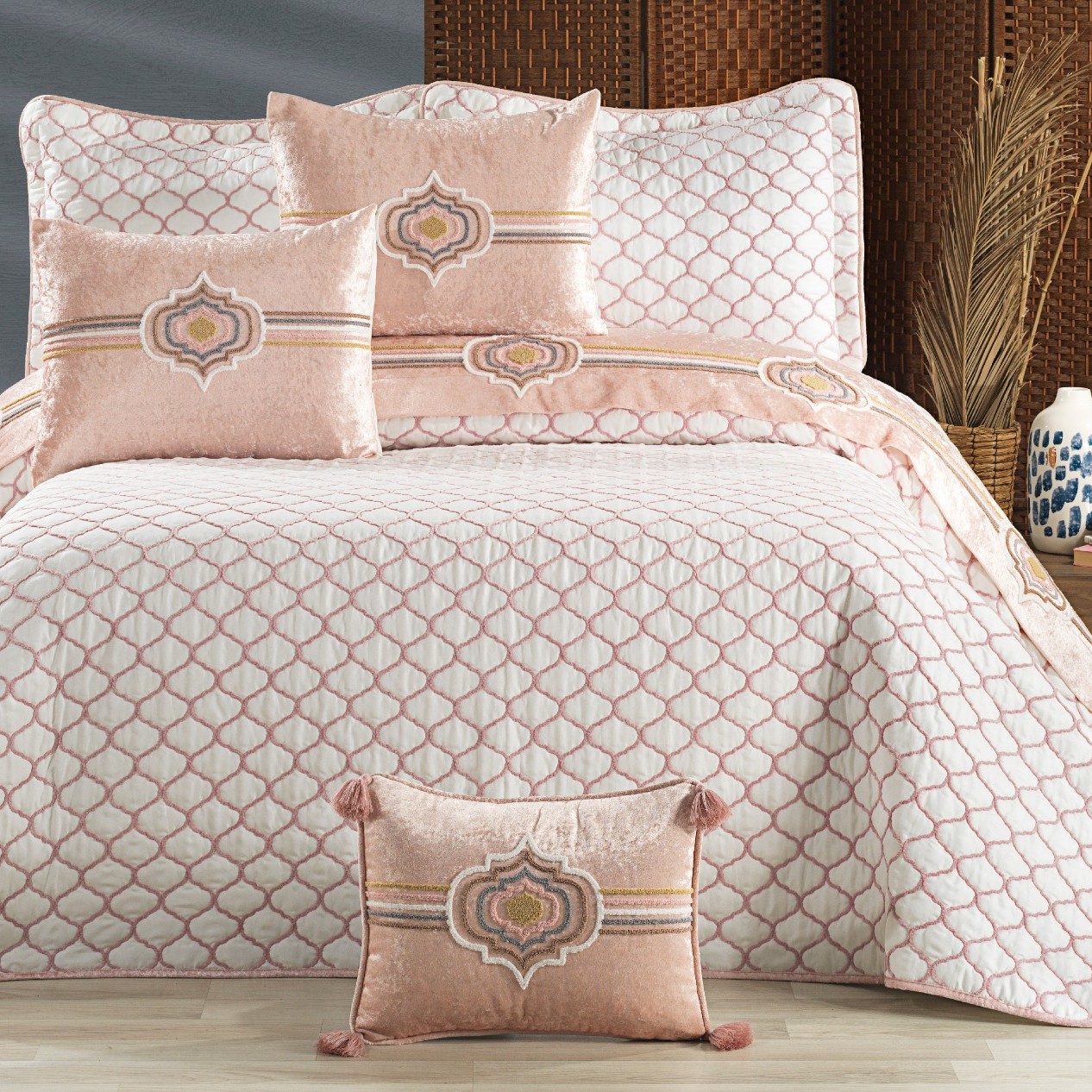 Set Luxury Oskar Crem/Pudra: Cuvertura, 4 Fete Perna + Fata Perna Decorativa, 6 Piese – Brillant – PUF237292
