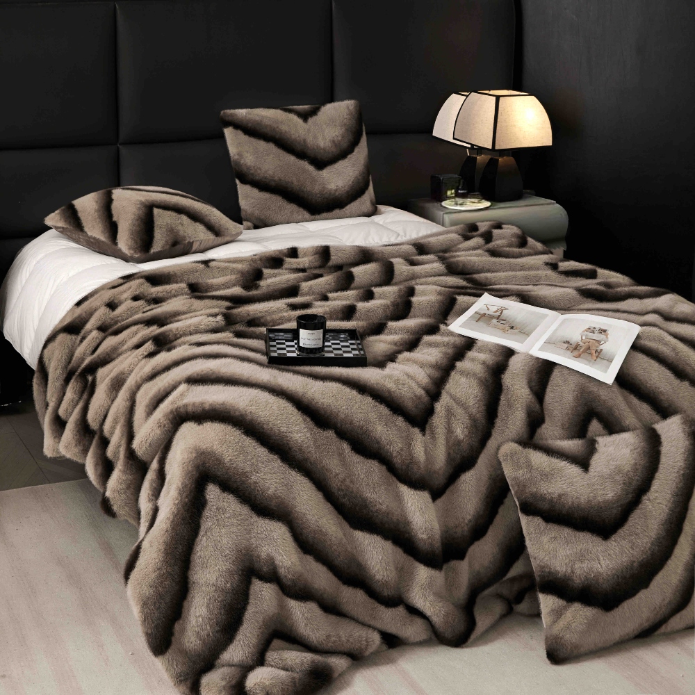 Patura de Lux din blanita artificiala de nurca, deosebit de groasa si eleganta. Patura masoara 200 x 230cm si include 2 fete de perna de 50 x 50cm.