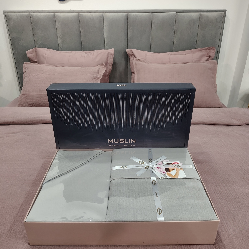 Redefinește stilul dormitorului tău cu setul nostru din muselină, materialul vedetă al momentului în materie de design interior. Realizată din bumbac 100% cu un fir special și exclusiv, această lenjerie oferă o textură extrem de fină și catifelată la atingere.